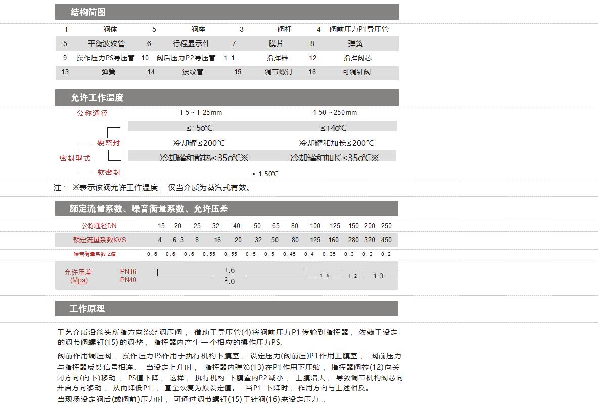 适用于非腐蚀性的液体、气体和蒸汽,在系统管道中的阀前压力控制,当阀前压力升高时,控制阀开启。